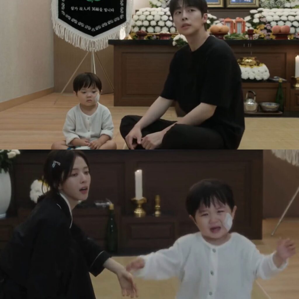 Hyun-Jin’s sister and Tae-Hyung’s brother, a married couple building a modest but hopeful future, die suddenly in a tragic accident. The shock is brutal, swift, and unforgiving. One moment, they are part of the background of everyday worries; the next, they’re gone — leaving behind their young son, Woo-Joo.