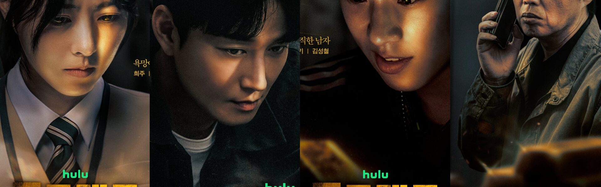 Each poster carries a dark and intense atmosphere, emphasizing the drama’s theme of desperation and the fierce struggle over the valuable gold bars. The characters appear isolated yet deeply connected through the dangerous situation that binds them together, hinting that alliances may shift and betrayals could happen at any moment.