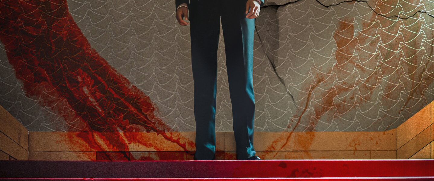 The teaser caption reads, “To heights as high as the fall, to climax as intense as the longing,” hinting at a gripping narrative filled with desire, power struggles, and dramatic turning points. The poster features Joo Ji Hoon standing sharply dressed in a suit atop glowing red stairs, framed by a cracked wall marked with a bold red circular pattern. The imagery suggests tension, fracture, and a looming emotional explosion — setting the tone for a high-stakes drama.