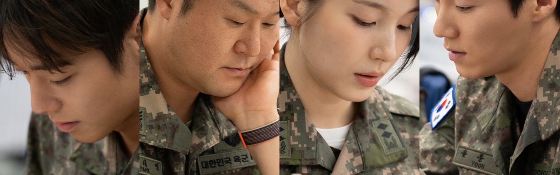 The drama stars Park Ji Hoon, Yoon Kyung Ho, Han Dong Hee, Lee Hong Nae, and Lee Sang Yi, who gathered together for the script reading. The stills reveal the actors wearing military uniforms while carefully studying the script, giving viewers a small glimpse of the tone and energy the series aims to deliver.